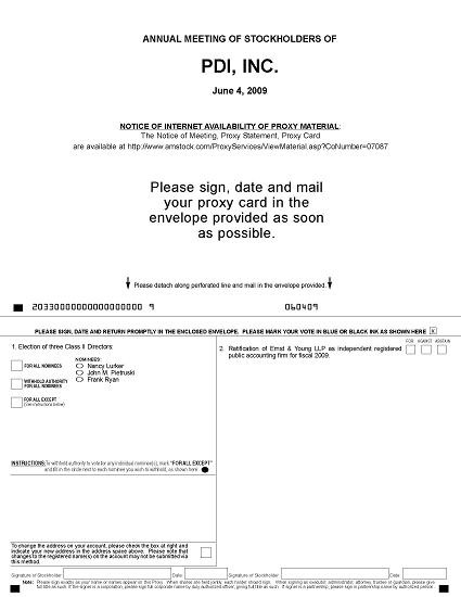 MEETING OF STOCKHOLDERS TO BE HELD ON JUNE 4, 2009