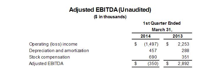 • | Adjusted EBITDA (a non-GAAP financial measure) of $(0.4) million for the first quarter of 2014 |