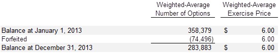 Compensation expense is recognized over the service period, which approximates the vesting period. There was no compensation expense recorded in 2013 or 2012.
