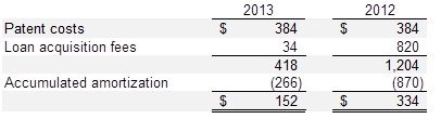 The estimated amortization expense for patent costs and loan acquisition fees subsequent to December 31, 2013 is as follows: