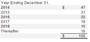 Approximate future minimum lease payments under noncancelable capital and operating leases as of December 31, 2013 are as follows: