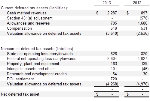 The payments are due during the time period the Company achieves the revenue milestones noted above for each of the four years noted. Once the total of all payments made by the Company reaches $3,000, the Company’s obligation is satisfied with the United States Department of Justice. At December 31, 2013, the Company recorded $2,000 as an accrued settlement liability, which is management’s best estimate of the amount that will be required to be paid under the Settlement Agreement based on its estimate of future revenues.