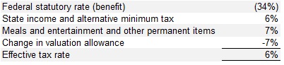 The reconciliation of the difference between the federal statutory tax rates and the Company’s effective tax rate from operations is as follows: