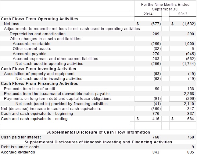 In 2014, the line-of-credit agreement was amended to cap the borrowing amount at $1,987 and to extend the maturity date to October 1, 2014. The amendment also added an event of default if the Company fails to execute and close, or fails to make substantial progress towards a merger or sale of substantially all of its assets.