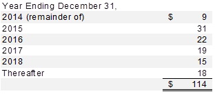 The Company is obligated under a variety of capital leases for equipment acquisitions. The long-term lease obligation represents the present value of the minimum lease payments discounted at rates ranging from 4% to 20%. The capitalized cost of equipment under capital leases is approximately $250 less accumulated depreciation of approximately $97 at September 30, 2014.