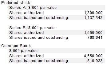 The Series B preferred stock has priority over the Series A preferred stock and the common stock with respect to dividends, redemption and liquidation rights, as defined. The Series B liquidation preference is equal to 2 times $7.35 per share plus all accrued and unpaid dividends, whether or not declared. The holders of Series B preferred stock are entitled to dividends at an annual rate of 8% of the original Series B issue price. The dividends accrue whether or not earned or declared and are cumulative.
